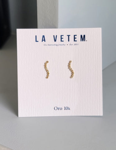 Aretes estilo broquel de líneas onduladas con zirconias en oro de 10k.