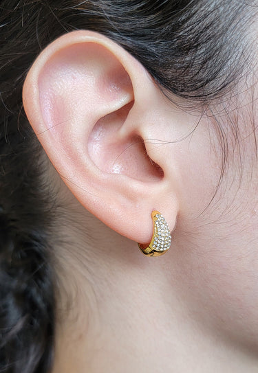 Arracadas pequeñas doradas en acero inoxidable con chapa de oro de 14k y zirconias.