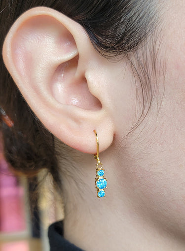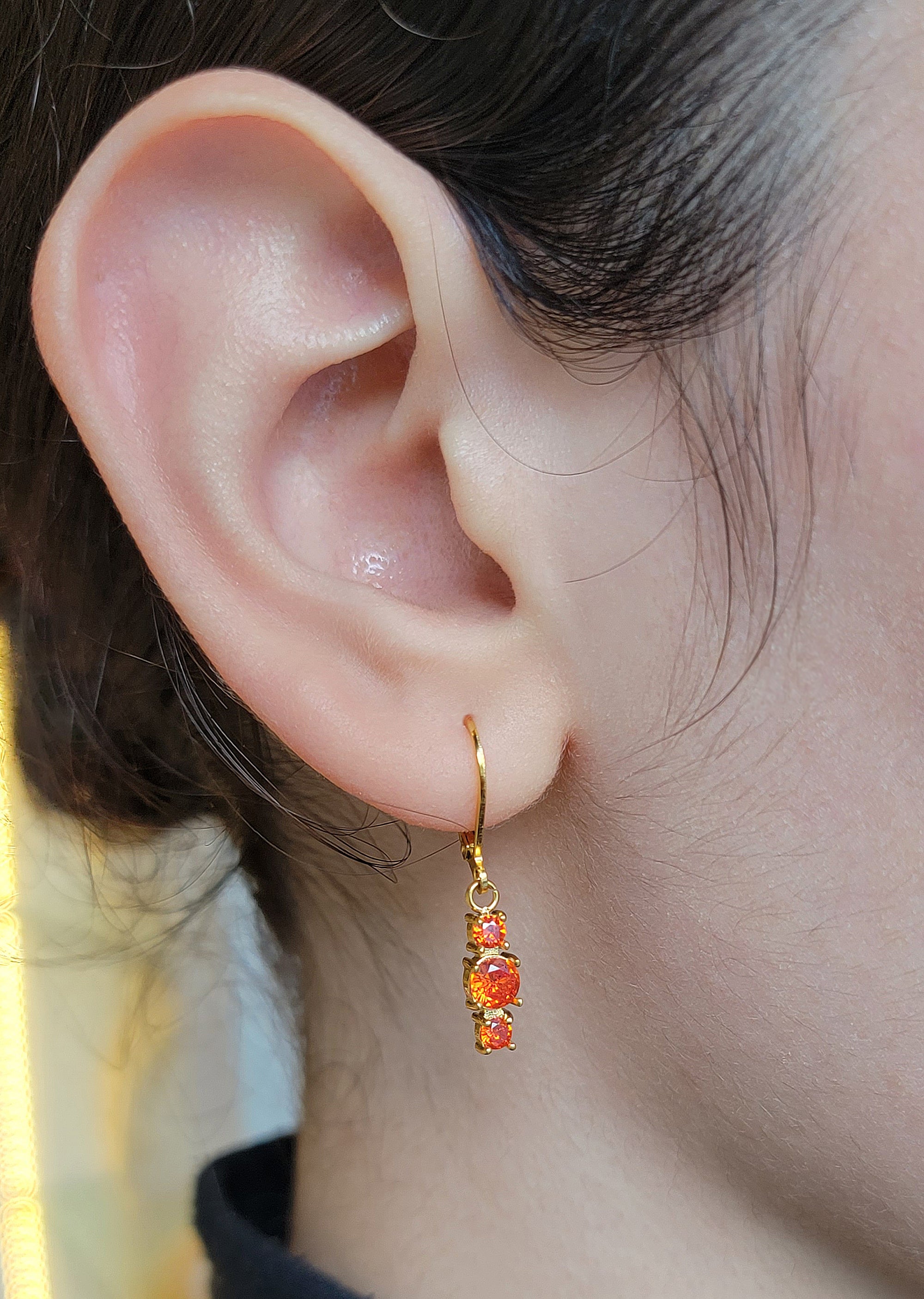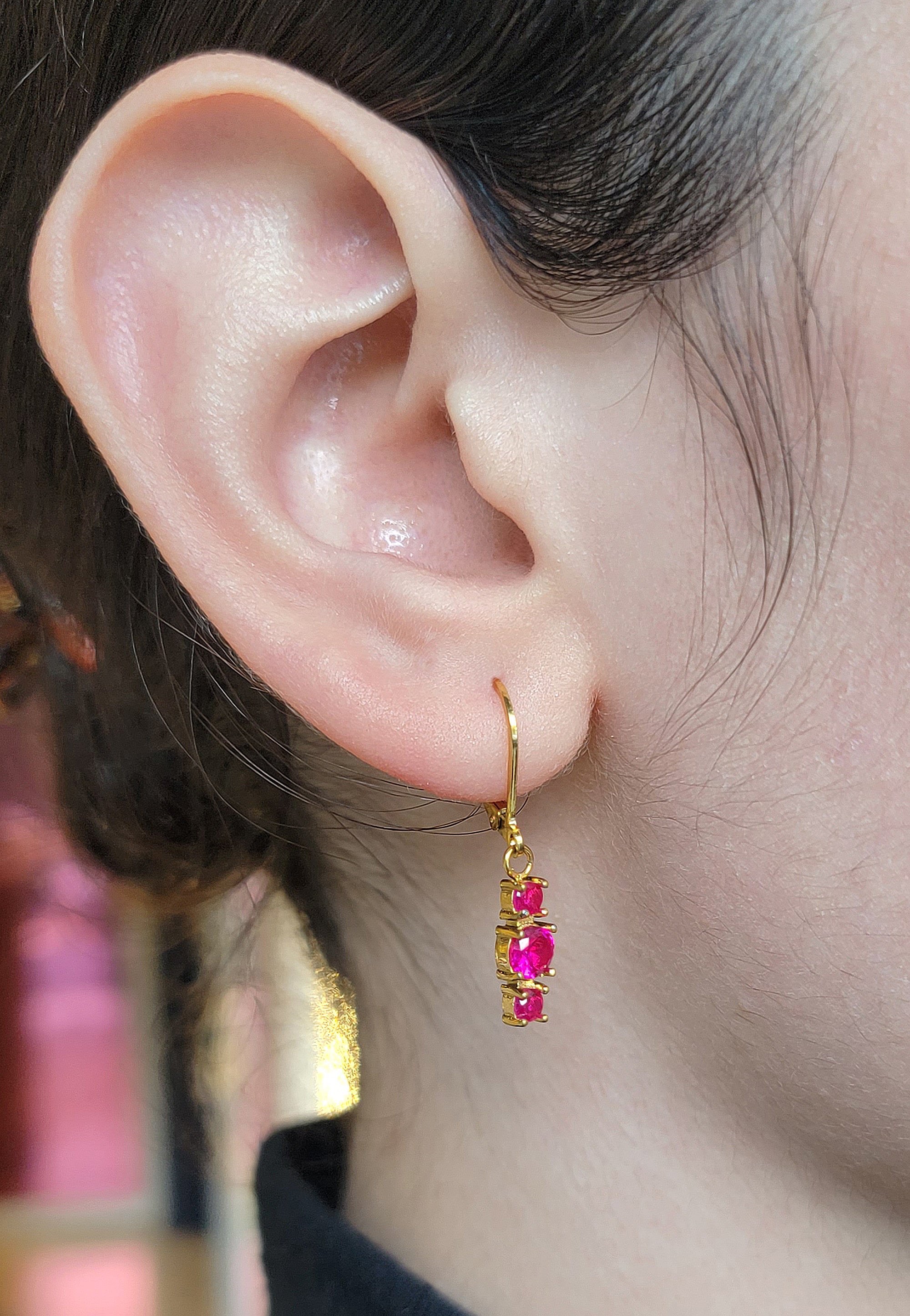 Arracadas con zirconias en tono, sky blue, amarillo, rosa y naranja, en acero inoxidable con chapa de oro de 14k.