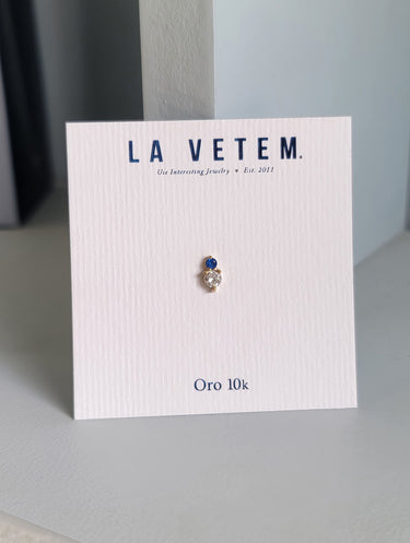 Piercing estilo broquel con zirconia verde, azul, fucsia y cristal, en oro de 10k.