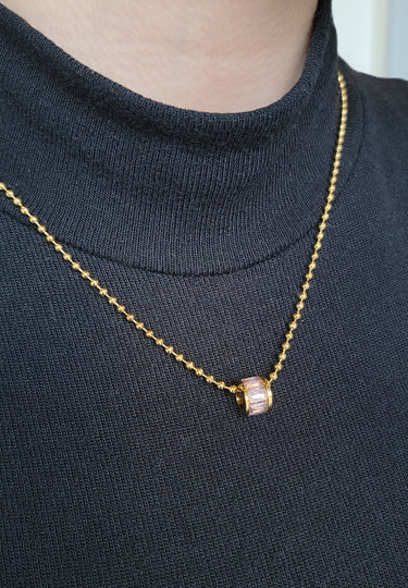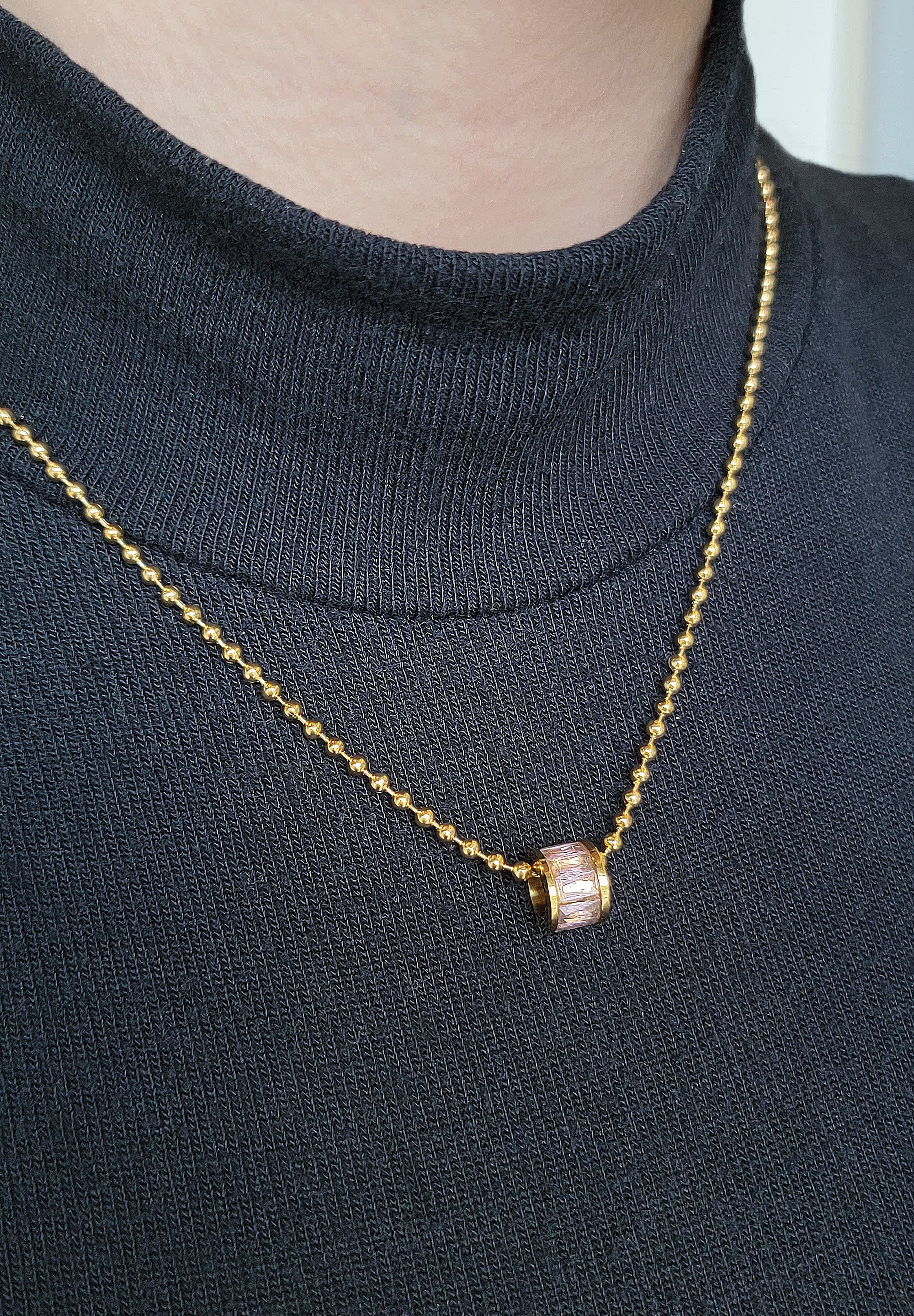 Collar con dije de aro en tono rosa, en acero inoxidable con chapa de oro de 14k y zirconias.