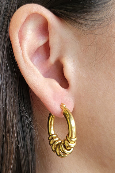 Arracada chunky con aros, en acero inoxidable con chapa de oro de 14k/platinado.