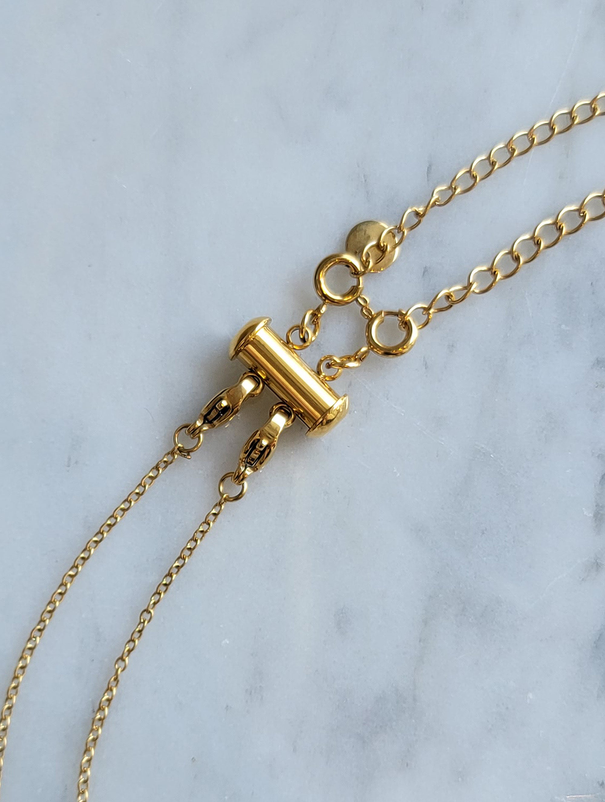 Separador de collares para layering, en acero inoxidable con chapa de oro de 14k.