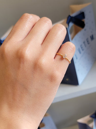Pinky Ring dorado con zirconia ovalada, en acero inoxidable con chapa de oro de 14k.