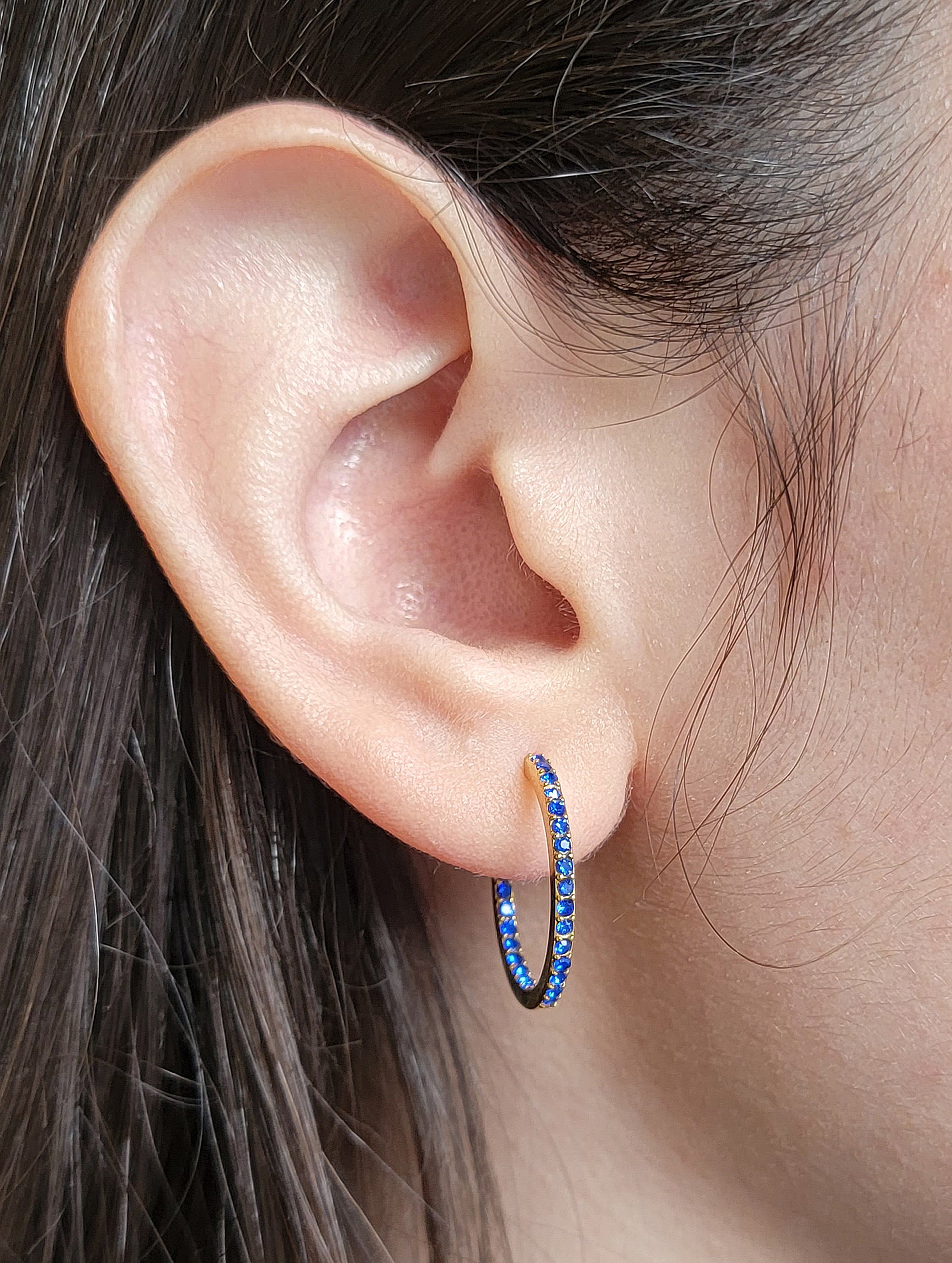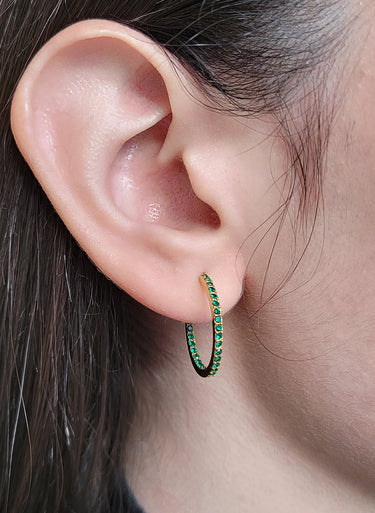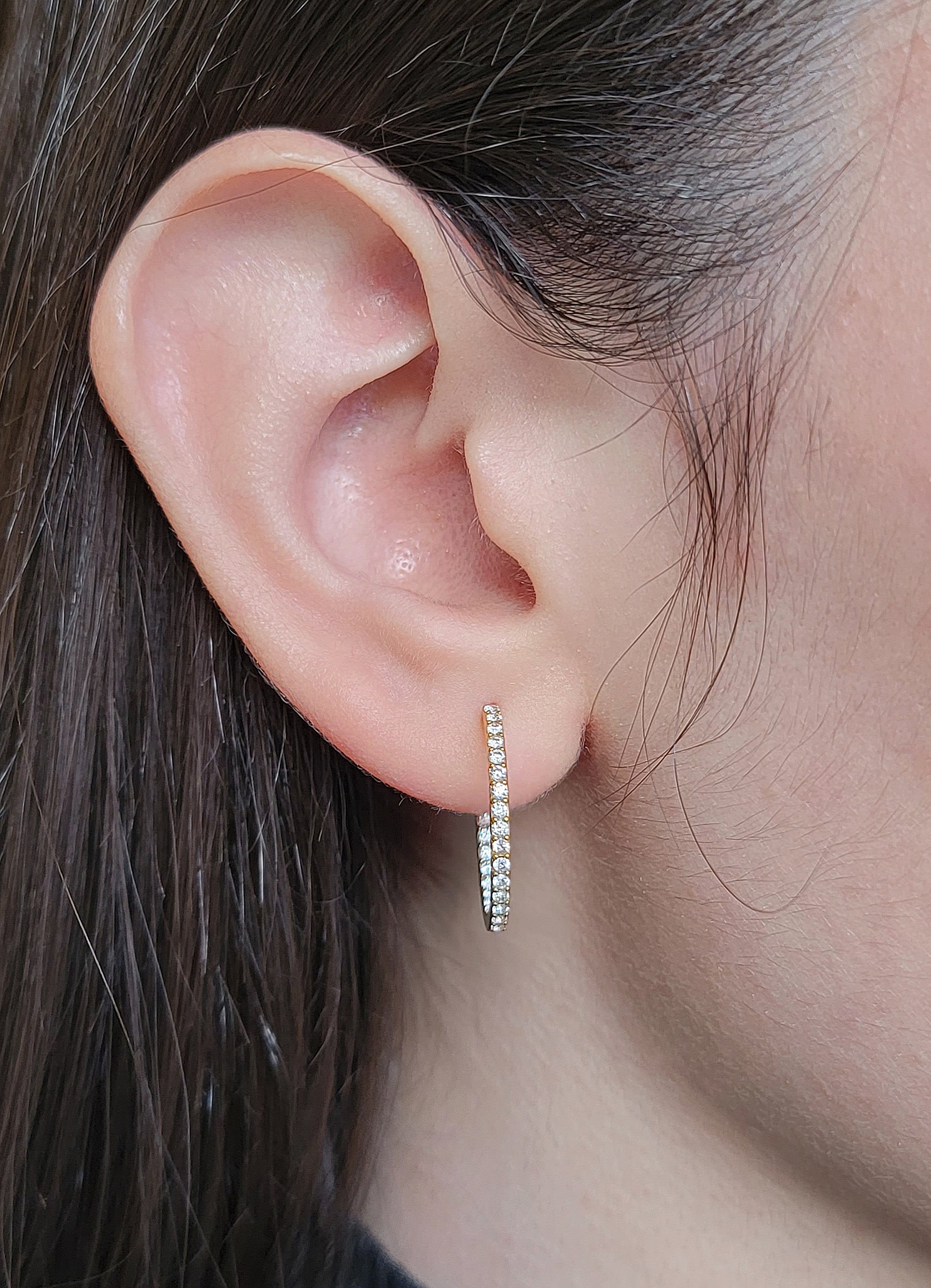 Semi arracadas estilo pavé, en acero inoxidable con chapa de oro de 14k y zirconias.