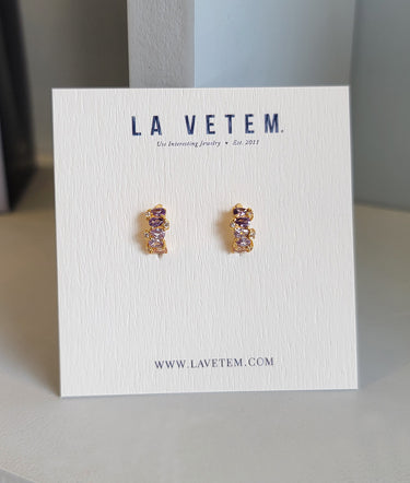 Semi arracadas mini, disponibles en verde, azul y morado, en plata .925 con chapa de oro de 14k y zirconias.