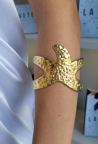 Brazalete rígido de estrella de mar, en acero inoxidable con chapa de oro de 14k.